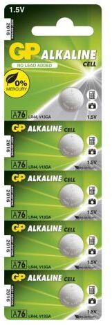 Alkáli gombelem GP LR44 (A76F), 5 db specifikációk: töltési lehetőség sz kémiai összetétele lúgos feszültség 1,5 V kategória / sorozat Alkáli cella névleges kapacitás 110 mAh (1,6 kOhm terhelés mellett) Gyártói cikkszám: GP A76F (AG13, LR44, LR1154, V13GA, PX76A) mérete 11,6 × 5,40 mm ár mennyiség 1 db értékesítési csomag 5 db, buborékfólia
