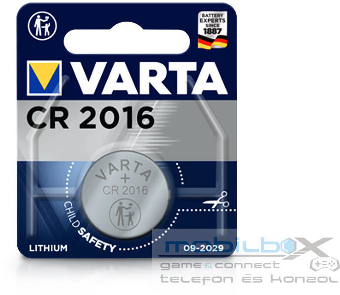 - A Varta gombelemei nagy energiát nyújtanak gépkocsi távirányítók, számológépek, mérlegek és egyéb elektronikai eszköz számára - Elektrokémiai rendszer: Lítium - Névleges feszültség: 3V - Kapacítás: 87 mAh - Magasság: 1,6 mm - Átmérő: 20 mm - Súly: 1,8 g
