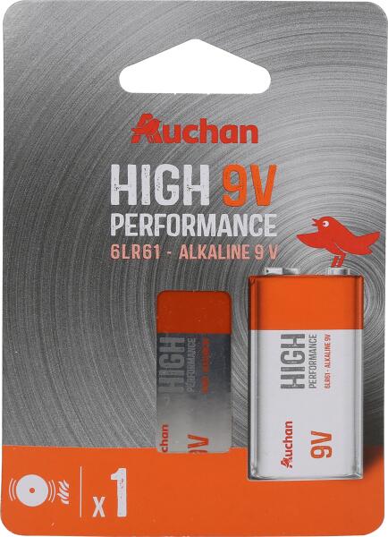 Szabványos 9V típusú tartós elem. További jelölések: 9V, 6LR6, MN1604, K9V, 6LR61/9V, 6AM-6, 4022, E-Bl