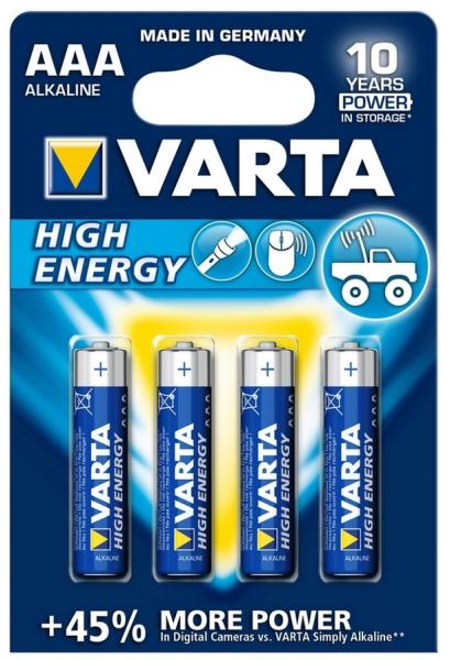 Nagy teljesítményá High Energy AAA alkáli elem az energiaigényes berendezésekhez, vezetlk nélküli egér, lámpa stb. "Single Press Out" lehetővé teszi a csomagolás egyszerű nyitását és tárolását a nem használt elemeknek Felhasználható 10 évDarabszám a csomagban 4 db