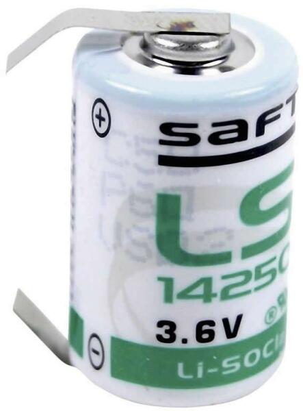 Saft LS 14250, 1/2 AA méretű 3,6V-os lítium elem "U" forrfüllel. Várható szállítási ideje - ha nincs raktáron - kb 1-2 hét.