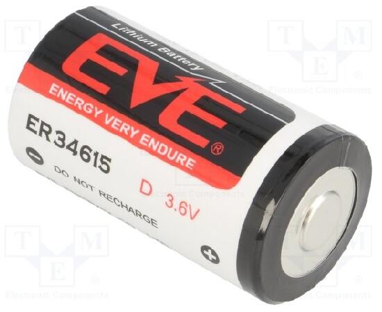 EVE-ER34615S Elem: lítium 3,6V D Ø 32,9x61,5mm 19000mAh MŰSZAKI ADATOK Az elemek típusa lítium Névleges feszültség 3.6V cella mérete D, R20 Külső méretek Ø 32.9 x 61.5mm kapacitás 19000mAh