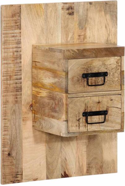 Dobja fel hálószobáját ezzel a falra szerelhető éjjeliszekrénnyel! Könnyedén kiegészíti otthona bármelyik bútorstílusát! Robusztus és stabil: A tömör mangófa egy erős, trópusi keményfa, mely rendkívüli tartóssága és szilárdsága miatt különösen kedvelt a bútorgyártásban. A fa gyönyörű erezetének köszönhetően minden darab kissé különbözik a többitől. B