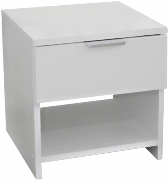 Termék részletekA praktikus, fehér HAVANA éjjeliszekrény ideális megoldás azok számára, akik modern hálószobába keresnek bútorokat. Az asztal minimalista megjelenése minden faágy mellett megállja a helyét otthon, panzióban vagy szállodában. Az éjjeliszekrény egy jól látható fogantyúval ellátott, zárható fiókkal és egy nyitott tárolóhellyel rendelkezik. A felső lapra stílusos lámp