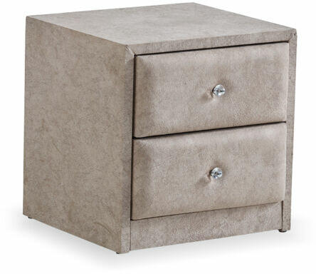Az Ocaliptus kárpitozott, 2 fiókos éjjeliszekrény kedves, kellemes hangulatú kiegészítője az Ocaliptus ágykeretnek. Bevonásához használt puha, bézs bőrmintás anyag és a fiókok előlapjának kialakítása illik az ágykeret fejvégéhez, így az éjjeli megfelelő kiegészítője annak. Az anyag ismételt megjelenése az Ocaliptus ágykereten, az Ocaliptus matracon, az Ocaliptus pa