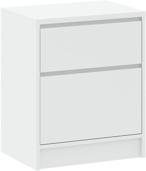 A BASIT éjjeliszekrény a praktikumot ötvözi az egyszerű és letisztult designnal. Két fiókkal rendelkezik, amelyek közül a felső kisebb, az alsó pedig valamivel nagyobb, így több helyet biztosít. A fehér színének köszönhetően könnyen beillik bármilyen stílusú otthonba. A BASIT hálószoba garnitúra gyönyörű és minimalista stílusú bútorokból áll, amelyek azonban b