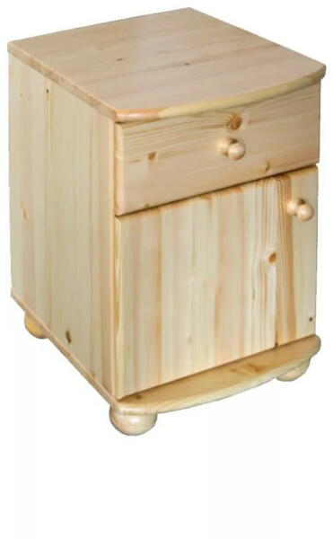 Tömör borovi fenyőből készült, magyar termék. Egyben érkezik, nem lapra szerelten. Csak ki kell csomagolni és már használhatja is! A képen a balos látható, ajtós részben egy polccal. A Claudia 1 ajtós fiókos éjjeliszekrény ívelt kialakításával a klasszikus vonalakat követi. Alapanyaga skandináv borovi fenyő, összeszerelést nem igényel. A fiók lakkozott kivitelben fa