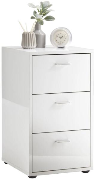 Az FMD éjjeliszekrény hálószobája megkapó kiegészítője lesz. Stílusos kialakítású, 3 fiókja pedig tágas helyet kínál bárminek, amit elérhető helyen kíván tartani. Emellett ébresztőóráját, kedvenc könyvét és éjjeli lámpáját is a tetején tárolhatja. Ez a stílusos FMD éjjeliszekrény tartós melanin-bevonatú forgácslapból készült magasfényű fehér színben