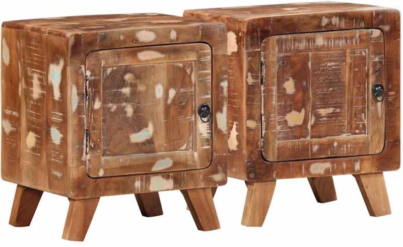 Csempésszen egy csipetnyi bájt otthonába ezekkel a stílusos éjjeliszekrényekkel! Robusztus és stabil: A tömör újrahasznosított fa újból felhasznált faanyagokból, például tíkfából, mangófából, fenyőfából vagy bükkfából áll. Ezeket a faanyagokat régi épületekből, például gyárakból, fészerekből és hajókból hasznosítják újra. A kopás jelei és a látható
