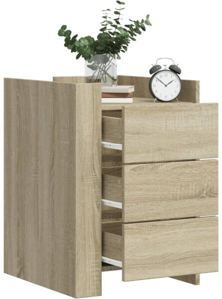 Ez a stílusos éjjeliszekrény jól fog illeni hálószobájába vagy nappalijába, és időtlen bájt csempész otthonába. Robusztus és stabil váz: A szerelt fa kivételes minőségű, sima felületű, erős, stabil, és nedvességálló. Bőséges tárolóhely: Az éjjeliszekrény három kényelmes fiókkal rendelkezik, így kéznél tarthatja a legfontosabb dolgait. Könnyen tisztítható: