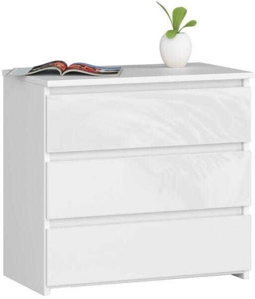Modern, elegáns éjjeliszekrény három fiókkal, magasfényű fehér kivitelben. Kiváló minőségű laminált bútorlapból készült, ABS élzárással a tartósság érdekében. Elegáns tárolómegoldás a hálószobábaAz AKORD CL3 éjjeliszekrény tökéletes választás a modern hálószobákba. A 60 cm széles bútor három tágas fiókkal rendelkezik, amelyek görgős síneken futnak a