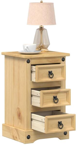 Ez a fából készült, stílusos dizájnnal ellátott éjjeliszekrény könnyen illeszkedik hálószobájába vagy nappalijába, és időtlen bájt kölcsönöz a belső térnek. Tömör fenyőfa: A tömör fenyőfa egy gyönyörű természetes anyag. A fenyőfa egyenes erezetű, a csomók pedig jellegzetes, rusztikus megjelenést biztosítanak az anyagnak. A tömör fenyőfából készült éjje