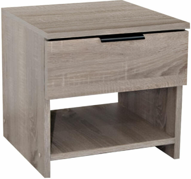 A praktikus, trüffel tölgyfa díszítésű HAVANA éjjeliszekrény ideális megoldás azok számára, akik modern hálószobába keresnek bútorokat. Az asztal minimalista megjelenése minden faágy mellett megállja a helyét otthon, panzióban vagy szállodában. Az éjjeliszekrény egy jól látható fogantyúval ellátott, zárható fiókkal és egy nyitott tárolóhellyel rendelkezik. A fel