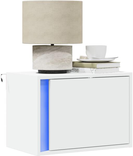 Vigyen modern bájt otthonába ezzel az elegáns éjjeliszekrénnyel! A stílusos, mégis praktikus kialakítású LED világítással ellátott éjjeliszekrény minden bizonnyal szobája középpontjává fog válni. Praktikus anyag: A szerelt fa kivételes minőségű, sima felületű, szilárd, stabil, és ellenáll a nedvességnek. Színes LED-világítás: Ez a szekrény RGB LED-világításs