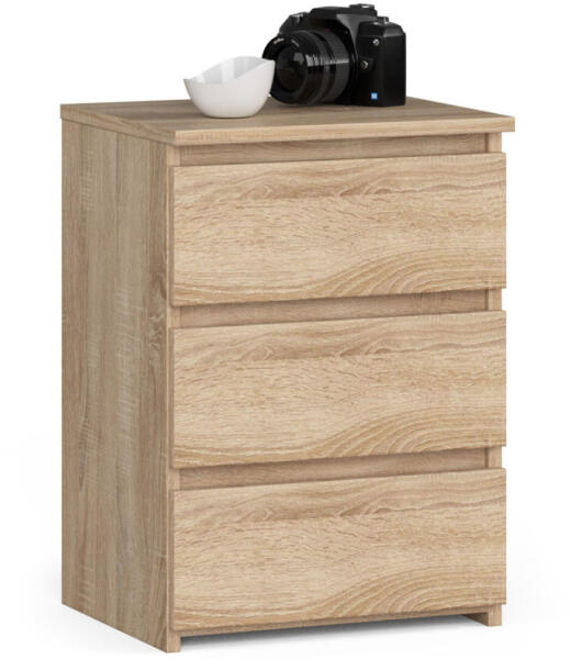 Kompakt és stílusos éjjeliszekrény három tágas fiókkal, amely tökéletes tárolási megoldást kínál hálószobájához. A sonoma tölgy kivitel és a modern dizájn harmonikusan illeszkedik bármilyen belső térbe. Elegáns tárolási megoldás a hálószobábaAz AKORD CL3 éjjeliszekrény a funkcionalitás és az esztétikum tökéletes ötvözete. A 40 cm széles bútor három tágas