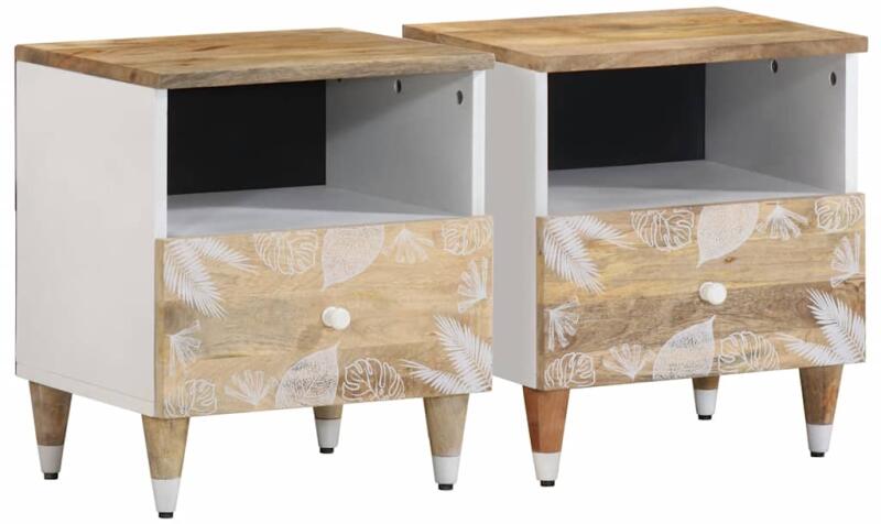 Ezek az elegáns kialakítású éjjeliszekrények otthona időtálló kiegészítői lesznek. Robusztus és stabil: A tömör mangófa egy erős, trópusi keményfa, mely rendkívüli tartóssága és szilárdsága miatt különösen kedvelt a bútorgyártásban. A fa gyönyörű erezetének köszönhetően minden darab kissé különbözik a többitől. Bőséges tárolóhely: Az éjjeliszekrén
