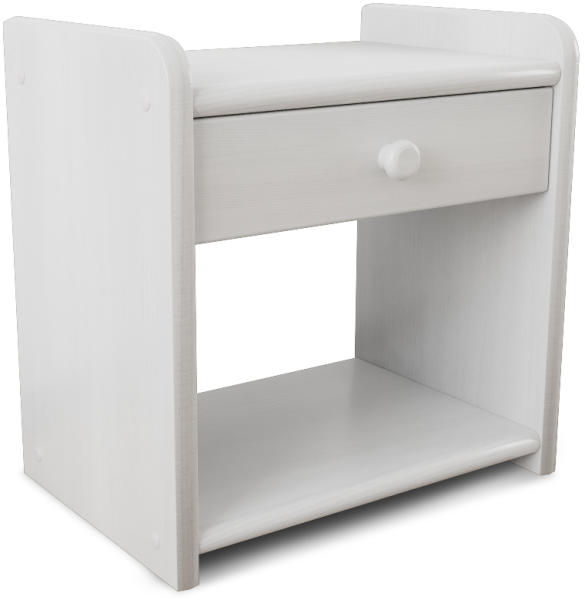 Tömör fából készült éjjeliszekrény. A kis asztal fenyőfából készül t. Az éjjeliszekrény kétszer van fehérre festve, környezetbarát színben. Az éjjeliszekrénynek fiókja és tároló rekesze is van. Az éjjeliszekrény kombinálható ágyakkal. Az asztal szilárd és stabil. Ehhez az éjjeliszekrényhez ugyanabban a színben nagyon sokféle ágyat kínálunk, nagyon kedvező