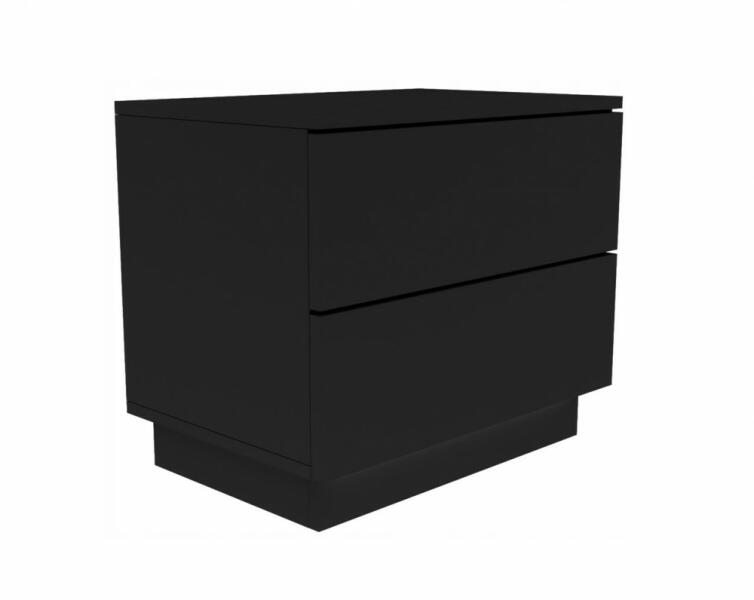 Holzmeister éjjeliszekrény fekete színben, fogantyú nélküli széles fiókokkal. A fiókok a fém görgős vezetőkkel simán és csendesen futnak és csukódnak. Szélességének köszönhetően számos tárgyat elhelyezhetünk benne. A csomag lapra szerelve kerül kiszállításra, tartalmaz minden elemet ami az összeszereléshez szükséges. Anyaga - 16 mm-es laminált forgácslap. Élek