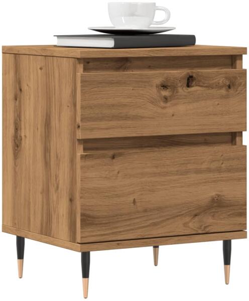 Ezek az elegáns kialakítású éjjeliszekrények otthona időtálló kiegészítői lesznek. Tartós anyag: A szerelt fa kivételes minőségű, sima felületű, szilárd, stabil, és ellenáll a nedvességnek. Erős váz: A fémből készült váz erős szerkezetet és stabilitást biztosít. Bőséges tárolóhely: A kisasztal bőséges helyet biztosít alapvető holmijai kézközelben törté