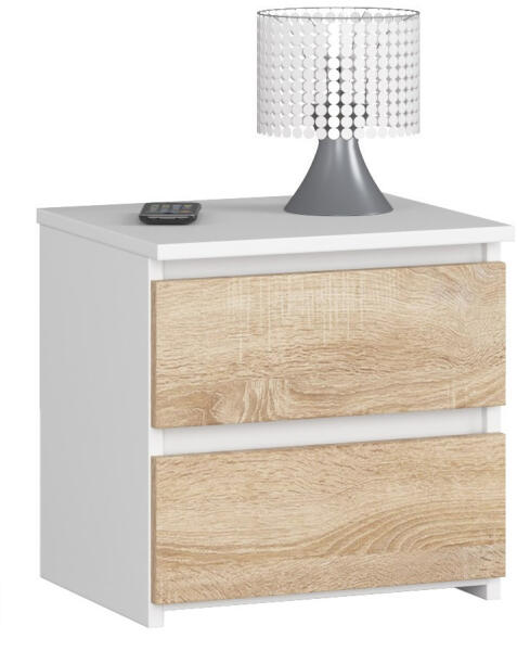 Modern, kompakt éjjeliszekrény két fiókkal, amely tökéletes kombinációja a fehér korpusznak és a Sonoma tölgy frontoknak. A 40x40x35 cm-es méretével ideális választás hálószobákba és ifjúsági szobákba egyaránt. Elegáns és praktikus tárolómegoldás a hálószobábaAz AKORD CLP CL2 éjjeliszekrény a modern design és a funkcionalitás tökéletes ötvözete. A fehér kor