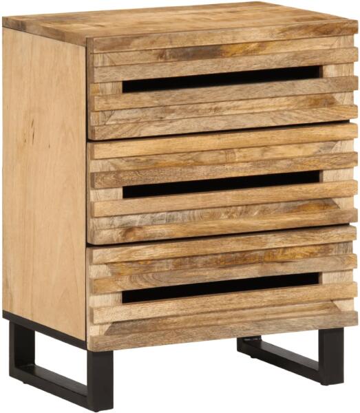 Ez a fából készült éjjeliszekrény otthona berendezésének nemcsak praktikus, hanem dekoratív darabja is lesz. Tömör mangófa: A tömör mangófa egy erős, trópusi keményfa, melyből strapabíró bútorok készíthetőek. A fa gyönyörű erezetének köszönhetően minden darab kissé különbözik a többitől. Bőséges tárolóhely: Az éjjeliszekrény 3 fiókkal rendelkezik, így