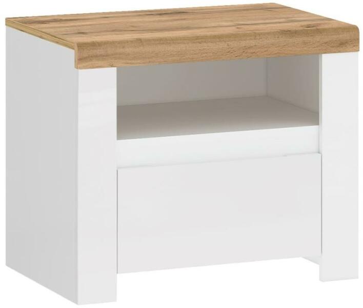 Éjjeli szekrény a kéznél lévő dolgok tárolására. Modern kialakításának köszönhetően tökéletesen illeszkedik a hálószobájába. Fehér és antracit színkombinációban kapható. Laminált forgácslapból készült. Az anyagvastagság: 1,8 cm.