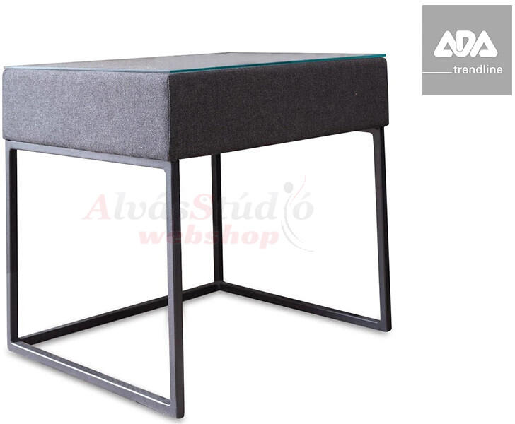 Ada Trendline - Pueblo éjjeliszekrény fém lábakkal és opcionálisan választható üveglap fedéllel. Kifejezetten Ada Trendline ágykeretekhez ajánlott éjjeliszekrény, mely az ággyal azonos szövet vagy textilbőr bevonattal is rendelhető. Választható 180 -féle szövet, 55 -féle textilbőr borítással. További részletekről érdeklődjön elérhetőségeinken. Ada Trendline - Pue