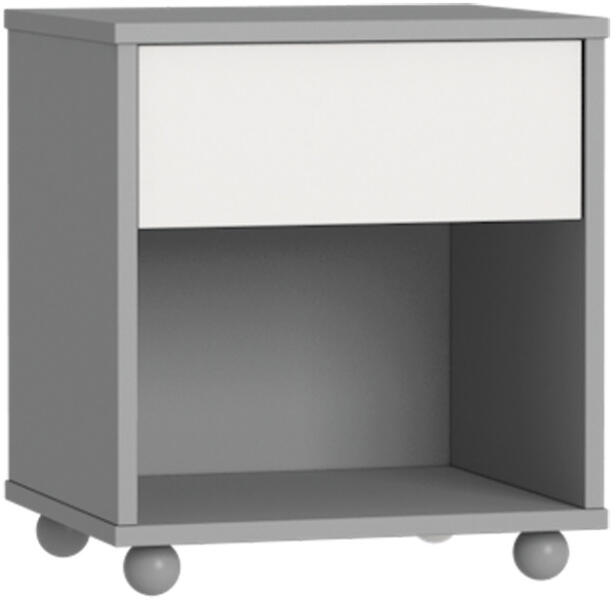 Faktum Alda Selyemszürke éjjeliszekrény Praktikus kis éjjeliszekrény mesekönyv, egy pohár víz, olvasólámpa, és egyéb apróságok számára az ágy mellett. Adatok: Szélesség: 45 cm Mélység: 37 cm Magasság: 52 cm Anyag: laminált forgácslap, festett MDF Szín: Selyemszürke, Fehér Szállítási idő a megrendeléstől számított 4-6 hét. Kiegészítő bútorelem, amivel befejez