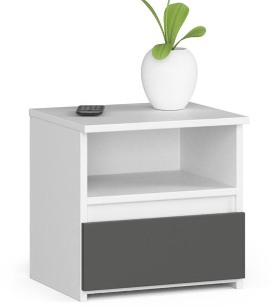 Modern és praktikus éjjeliszekrény egy fiókkal, amely tökéletes kiegészítője lehet hálószobájának. A fehér és grafitszürke matt színkombináció elegáns megjelenést kölcsönöz, míg a kopásálló laminált lap és ABS élzárás tartósságot biztosít. Elegáns és praktikus tárolómegoldás a hálószobábaAz AKORD CL1 éjjeliszekrény a modern hálószobák tökéletes ki