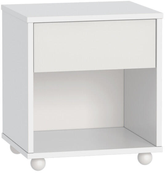 Éjjeliszekrény fehér színben. Egyszerű, modern stílusának köszönhetően bármilyen otthonba illik. Tágas fiók azoknak a dolgoknak a tárolására, amelyeket kéznél akarsz tartani. Laminált forgácslapból készült. Az anyagvastagság: 1,8 cm.