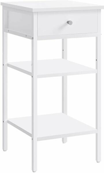 éjjeliszekrény, végasztal, magas éjjeliszekrény fiókkal és 2 tárolópolccal, helytakarékos, ipari díszítőasztal, rusztikus fehér : [Modern stílus] A teljesen fehér szín és a tiszta vonalak modern, minimalista megjelenést kölcsönöznek ennek az éjjeliszekrénynek. Tágas fiókja és polcai egyaránt funkcionálisak és látványosak, stílust és tárolási lehetőséget adnak