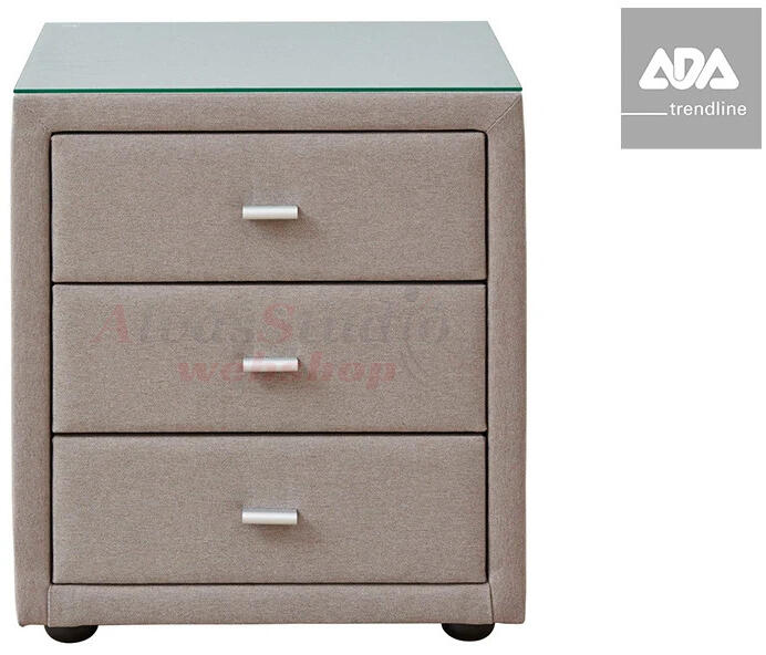 Ada Trendline - Nairo három fiókos éjjeliszekrény opcionálisan választható üveglap fedéllel. Kifejezetten Ada Trendline ágykeretekhez ajánlott éjjeliszekrény, mely az ággyal azonos szövet vagy textilbőr bevonattal is rendelhető. Választható 180 -féle szövet, 55 -féle textilbőr borítással. További részletekről érdeklődjön elérhetőségeinken. Ada Trendline - Nairo h