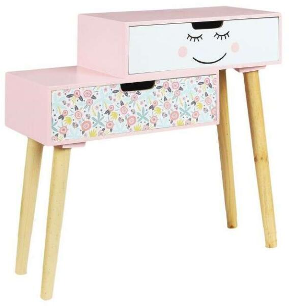 Gyerek éjjeliszekrény (rózsaszín) termékjellemzők: Színe: fa, rózsaszín, fehér, fekete, zöld Anyaga: Fa - Fenyő Termék mérete: 55 x 22 x 50,08 cm Csomagolási egység mérete: 29 x 58 x 24,5 cm Bruttó súly: 4,78 kg Csomag tartalma: 1x Gyerek éjjeliszekrény (rózsaszín)