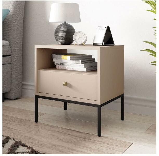 Éjjeliszekrény. Egyszerű, modern stílusával minden otthonba illik. Tágas fiók és polc a kéznél lévő dolgok tárolására. 16 mm vastag forgácslapból készült. Ez a bútordarab szétszedve érkezik.