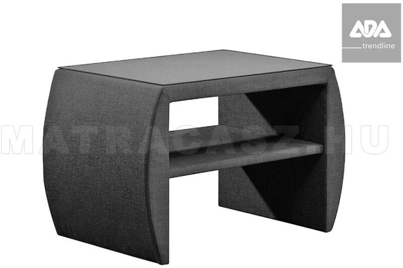 Ada Trendline - Bonella polcos éjjeliszekrény opcionálisan választható üveglap fedéllel. Kifejezetten Ada Trendline ágykeretekhez ajánlott éjjeliszekrény, mely az ággyal azonos szövet vagy textilbőr bevonattal is rendelhető. Választható 180 -féle szövet, 55 -féle textilbőr borítással. További részletekről érdeklődjön elérhetőségeinken. Ada Trendline - Bonella polcos