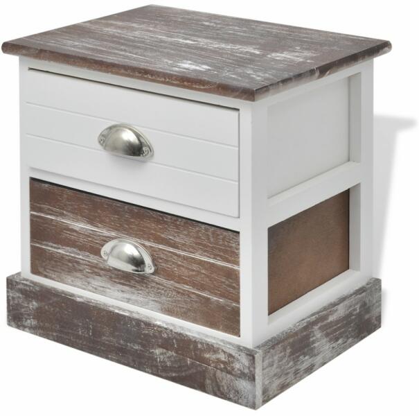 Szín: barna és fehér Anyag: császárfa + furnérlemez Teljes méret: 38 x 28 x 38 cm (Szé x Mé x Ma) Fiók méretei: 31,5 x 23 x 12,5 cm (Szé x Mé x Ma) 2 fiókkal Klasszikus francia stílusa van Ágy melletti kisszekrényként, telefonasztalként, kisasztalként, faliszekrényként, fiókos szekrényként, tárolószekrényként, éjjeliszekrényként, ágyvégként, kisasztalként, stb.