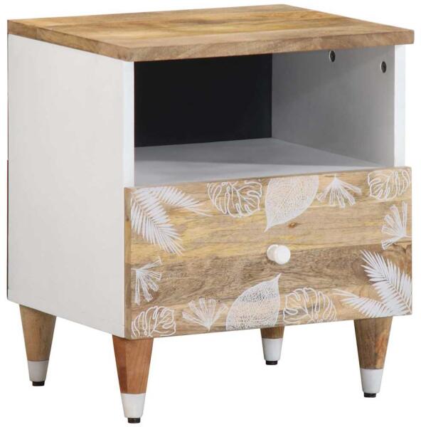 Ez az elegáns kialakítású éjjeliszekrény otthona időtálló kiegészítője. Robusztus és stabil: A tömör mangófa egy erős, trópusi keményfa, mely rendkívüli tartóssága és szilárdsága miatt különösen kedvelt a bútorgyártásban. A fa gyönyörű erezetének köszönhetően minden darab kissé különbözik a többitől. Bőséges tárolóhely: Az éjjeliszekrény bőséges
