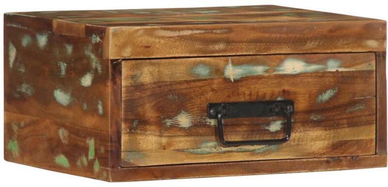 Ez a falra szerelhető éjjeliszekrény tökéletes megoldás otthonába a hely maximális kihasználására és a padló tisztán tartására. Robusztus és stabil: A tömör újrahasznosított fa újból felhasznált faanyagokból, például tíkfából, mangófából, fenyőfából vagy bükkfából áll. Ezeket a faanyagokat régi épületekből, például gyárakból, fészerekből és hajók