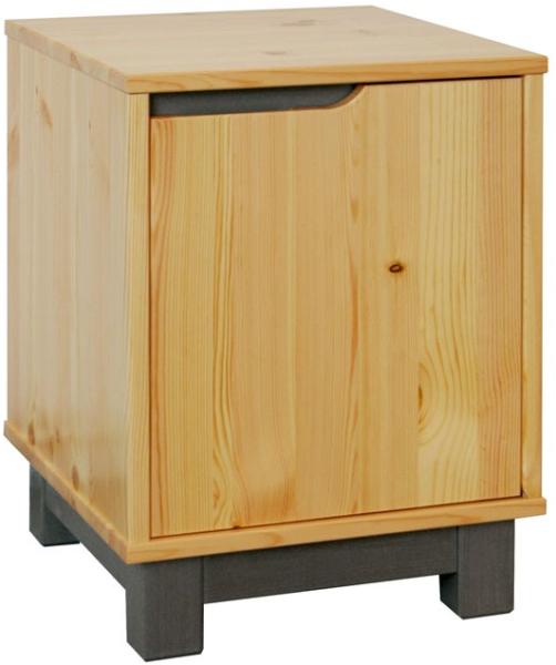 Foganttyú nélküli, modern, letisztult, elegáns, tömör fenyő éjjeliszekrény. Kérem válasszon melyik oldalon legyen a zsanér! Részben pácolt, válásztható színnel: Szürke-Fehér-Dió-Wenge