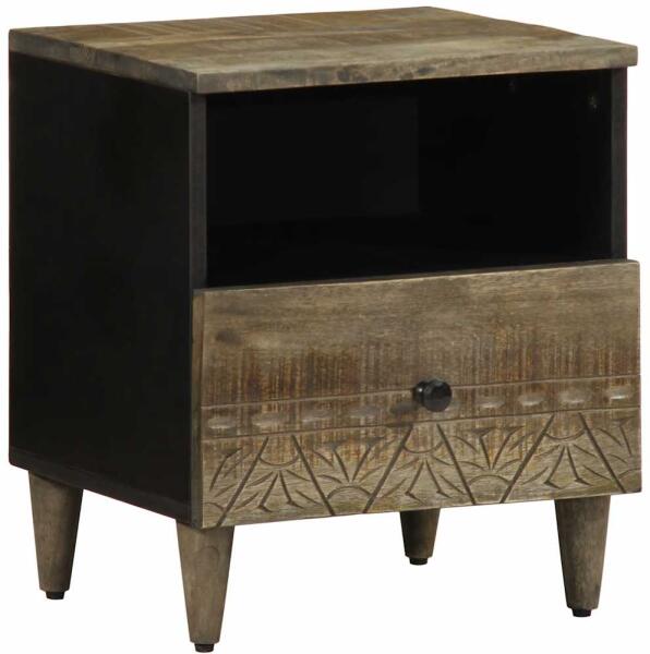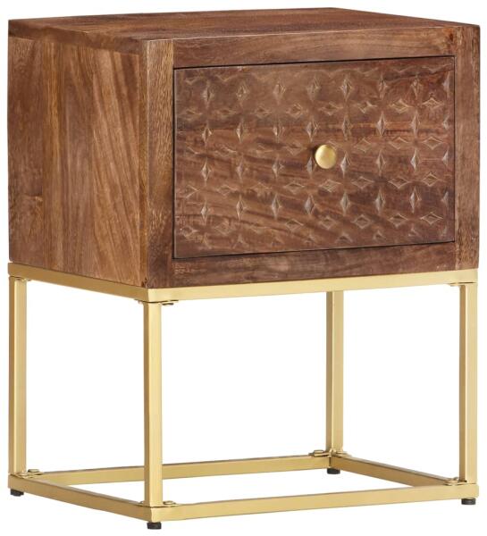 Ez a vintage stílusú és praktikus éjjeliszekrény kortalan kiegészítője lehet otthonának. Ennek az éjjeliszekrénynek az eleje kézzel faragott részekkel lett ellátva. Kézzel készült tömör mangófából, egy sűrű és robusztus keményfából, amelynek gyönyörű barna vagy arany csíkok és kontúrok vannak a felületén. A megmunkálás minden lépését a legnagyobb gondosság