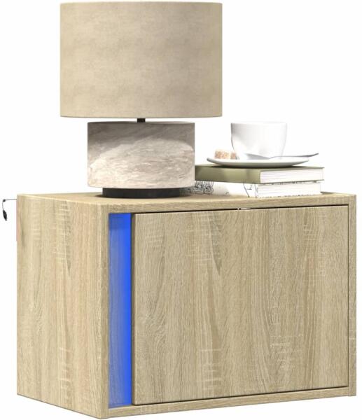 Ez a LED-fényekkel ellátott éjjeliszekrény lakberendezése időtlen kiegészítője lesz. Tartós anyag: A szerelt fa kivételes minőségű, sima felületű, szilárd, stabil, és ellenáll a nedvességnek. RGB LED-lámpák: A szekrény élénk RGB LED-lámpákkal van felszerelve. A különféle testre szabható menük segítségével könnyedén megváltoztathatja a lámpák színét, sőt,