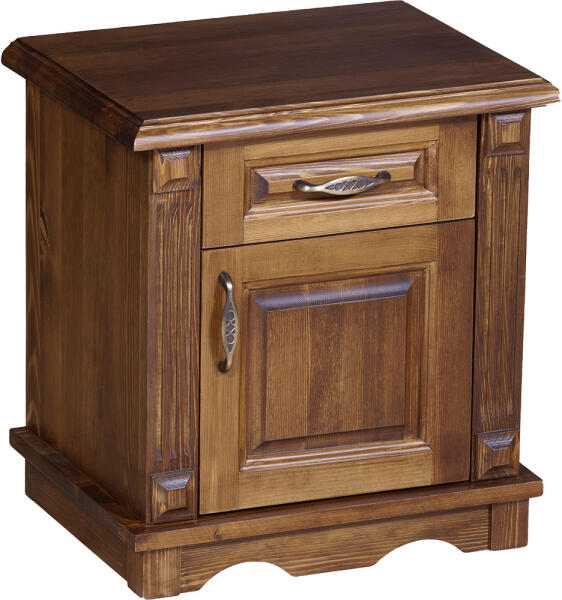 A Möbelstar termékcsalád borovi fenyőből készült 1 ajtós, 1 fiókos éjjeliszekrénye . Könnyen összeszerelhető, de mégis masszív lapraszerelt borovi fenyő éjjeliszekrény . A borovi fenyőfa bútor természetes megjelenése kényelmet, nyugalmat áraszt otthonába. Pácolt 1 ajtós 1 fiókos szekrény , kiváló minőségű borovi fenyőből, igényes kialakításban. Méret: 54x38