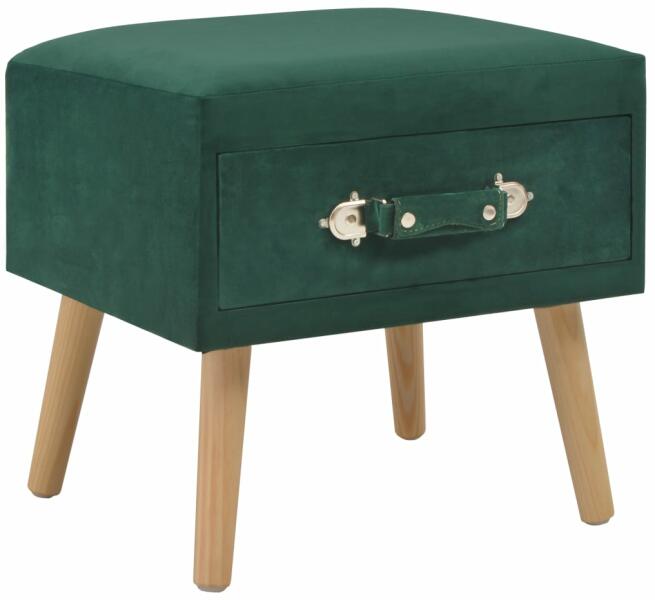 Színe: zöldAnyaga: bársony + tömör fenyőfaMérete: 40 x 35 x 40 cm (Szé x Mé x Ma)Egy fiókkalAnyag: Poliészter: 100% Ez az éjjeliszekrény elegáns dizájnjával kiváló kiegészítője lehet otthonának. Ez a tömör fenyőfából és bársonyból készült éjjeliszekrény rendkívül tartós és stabil. A kompakt bársonyszekrény finoman betolható fiókkal rendelkezik, és elegend