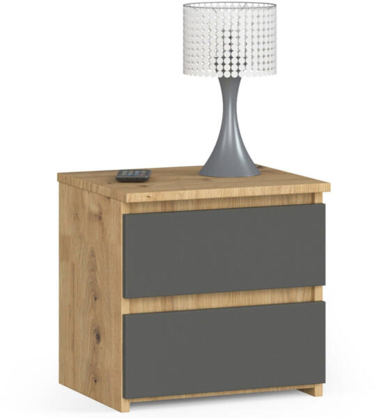 Modern és elegáns kétfiókos éjjeliszekrény, amely tökéletesen ötvözi az artisan tölgy és szürke színvilágot. Kopásálló laminált lapból készült, ABS élzárással a tartósság érdekében. Elegáns és praktikus tárolómegoldás a hálószobábaAz AKORD CLP éjjeliszekrény a modern design és a praktikus funkcionalitás tökéletes ötvözete. A 40x40x35 cm-es kompakt mére