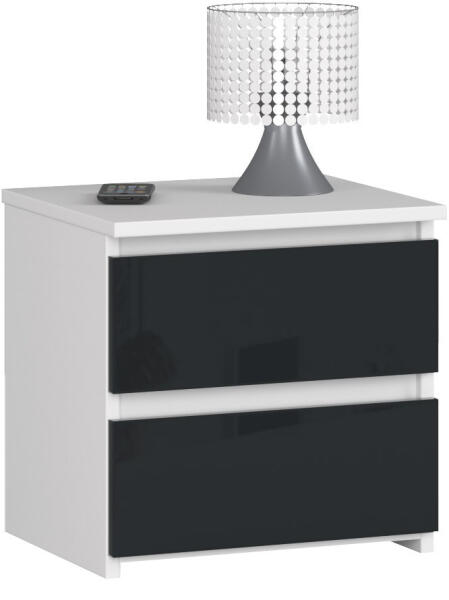 Modern, kompakt éjjeliszekrény két fiókkal, amely tökéletesen ötvözi a fehér korpusz és a magasfényű grafit frontok elegáns kontrasztját. A 40x40x35 cm-es méretével ideális választás kisebb hálószobákba is. Elegáns tárolómegoldás a modern hálószobábaAz AKORD CL2 éjjeliszekrény a modern dizájn és a praktikus funkcionalitás tökéletes ötvözete. A fehér korpusz
