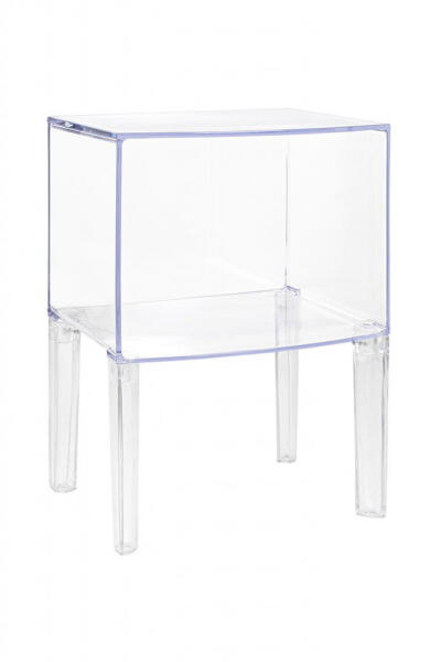 Modern, átlátszó polikarbonát éjjeliszekrény praktikus tárolópolccal, amely könnyű és tartós anyagból készült. Tökéletes választás kis terekbe, mivel vizuálisan nem terheli a helyiséget. Innovatív átlátszó design a modern otthonokbaA Vision éjjeliszekrény egy különleges darab, amely egyesíti a funkcionalitást és az esztétikát. Teljes egészében polikarbonátból