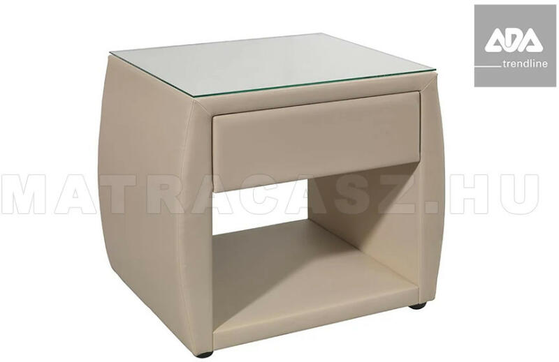 Ada Trendline - Ancora polcos -fiókos éjjeliszekrény opcionálisan választható üveglap fedéllel. Kifejezetten Ada Trendline ágykeretekhez ajánlott éjjeliszekrény, mely az ággyal azonos szövet vagy textilbőr bevonattal is rendelhető. Választható 180 -féle szövet, 55 -féle textilbőr borítással. További részletekről érdeklődjön elérhetőségeinken. Ada Trendline - Ancora