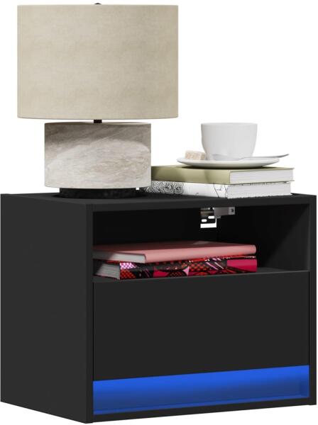 Díszítse hálószobáját ezzel a LED-es lámpával felszerelt, falra szerelhető éjjeliszekrénnyel! Könnyedén beleolvad bármilyen stílusú berendezésbe! Stabil és tartós anyag: A szerelt fa tartós és stabil anyag sima felülettel, amely ellenáll a nedvességnek, a vetemedésnek és a hasadásnak, így megbízható választás különféle célokhoz. RGB LED-világítás a kellemes k