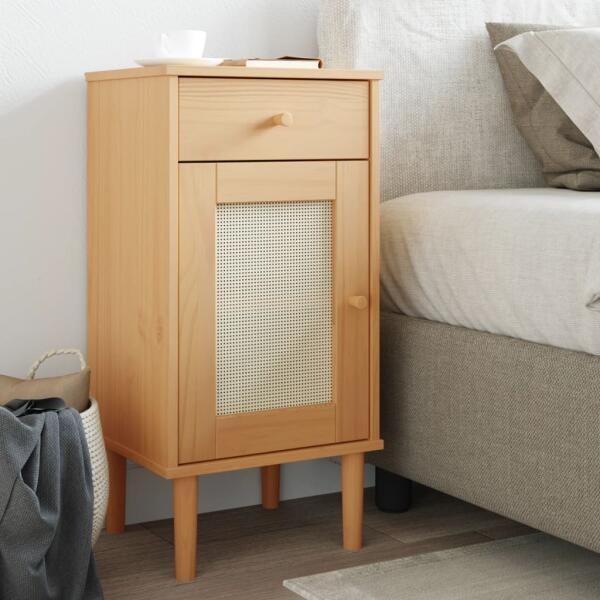 Ez a fából készült, stílusos dizájnnal ellátott éjjeliszekrény könnyen illeszkedik hálószobájába vagy nappalijába, és időtlen bájt kölcsönöz a belső térnek. Tömör fenyőfa: A tömör fenyőfa egy gyönyörű természetes anyag. A fenyőfa egyenes erezetű, a csomók pedig jellegzetes, rusztikus megjelenést biztosítanak az anyagnak. A tömör fenyőfából készült éjje