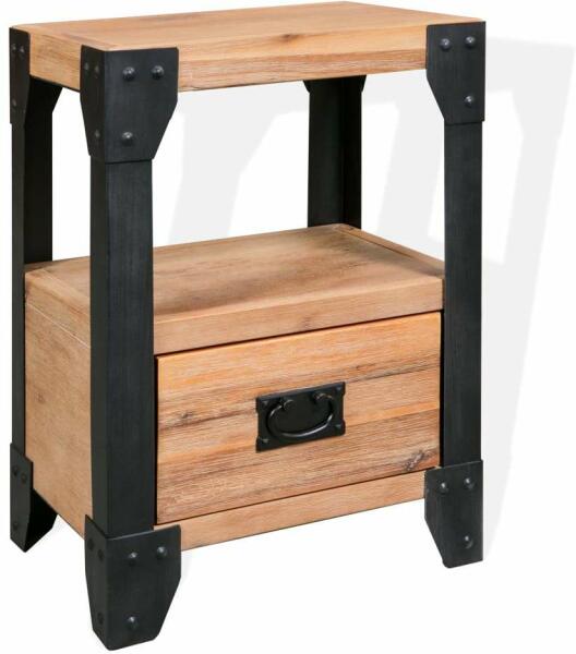 Ez a vagány, ipari stílusú éjjeliszekrény kiváló kiegészítője lehet hálószobája berendezésének. Kiváló minőségű anyagokból készült, így felülkezelt akácfa szerkezete és fekete acél díszei a legújabb ipari stílusú divatőrületben pompáznak. A masszív asztallap ideális helye lehet például egy ébresztőórának, olvasólámpának, könyveknek, de nyugodtan elhel